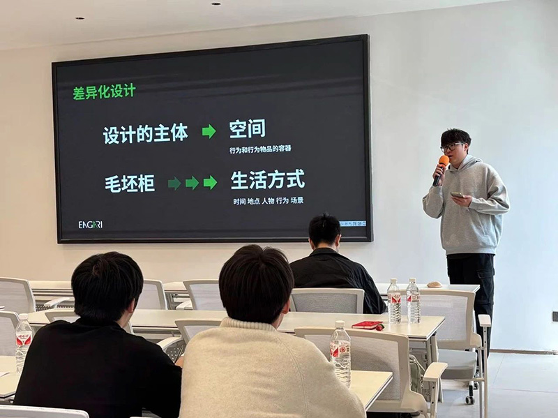 此次上海设计团队深入意格丽智造基地,设计师们亲眼见证意格丽如何将工艺细节与产品体系深度融合,实现“方案即落地”的硬核实力。 03.意格丽总部展厅---培训交流 { 探·文·创·新·径 } 聆听重要人物的心灵启迪共赴定制新程 自媒体运营总监梅河龙EDC意格丽设计中心主理人金海洋上海意格丽专卖店梅林峰意格丽董事长梅建华 自媒体运营总监:梅河龙