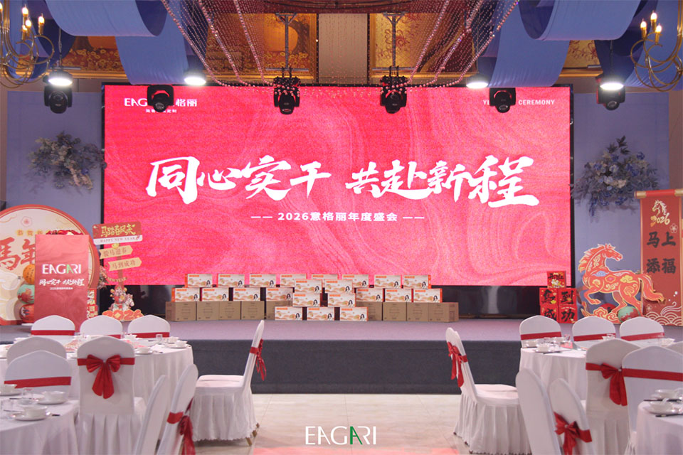 岁序更替,华章日新 凝心聚力,共赴新程 当冬日的暖意邂逅奋斗的热忱, 意格丽2026年度盛会在万众期盼中盛大启幕。 全体意格丽家人欢聚一堂, 以“同心实干 共赴新程”为初心, 复盘过往荣光,共话未来征途, 欢声笑语中凝聚迈向高定新未来的磅礴力量。