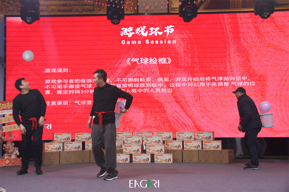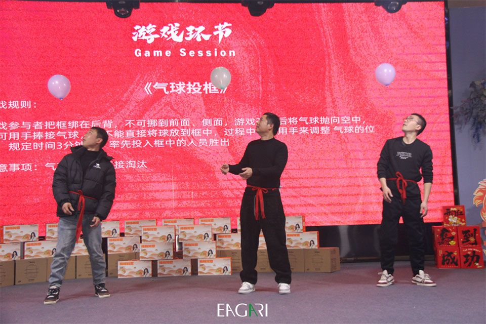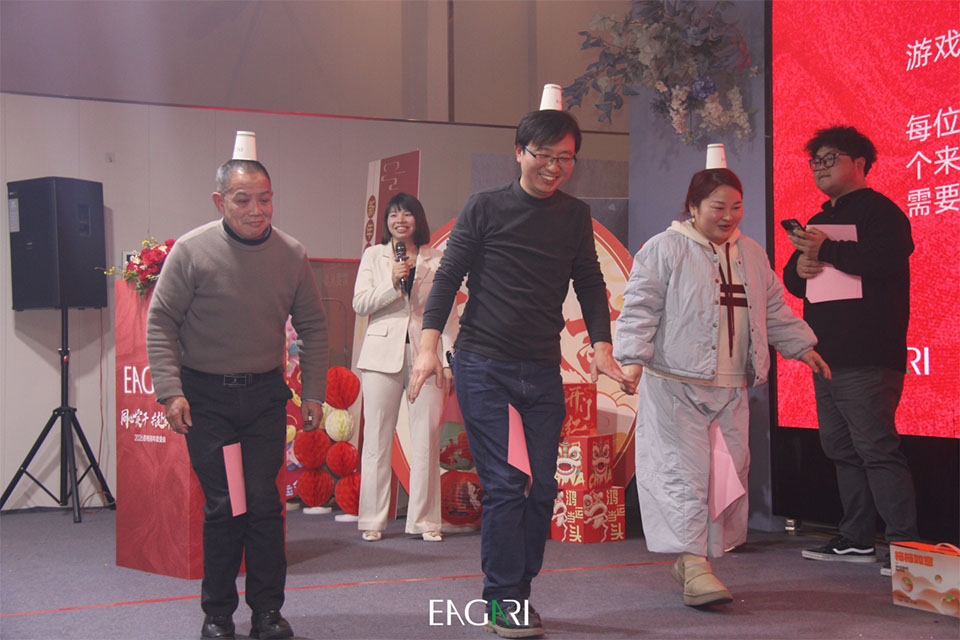 表彰环节过后,最后一轮游戏“阿凡提赶集”精彩上线,将现场欢乐值推向顶峰。同事们化身“赶集会”上的参与者,或机智闯关、或协作互助,沉浸式的游戏体验让大家全身心投入其中。有的同事反应敏捷、一路过关斩将,有的团队默契配合、携手共赢,现场欢呼声、喝彩声不断,每个人的脸上都洋溢着灿烂的笑容,充分展现了意格丽家人积极向上、乐于协作、享受快乐的精神风貌,大家在游戏中放松身心,在互动中凝聚情谊,不亦乐乎。