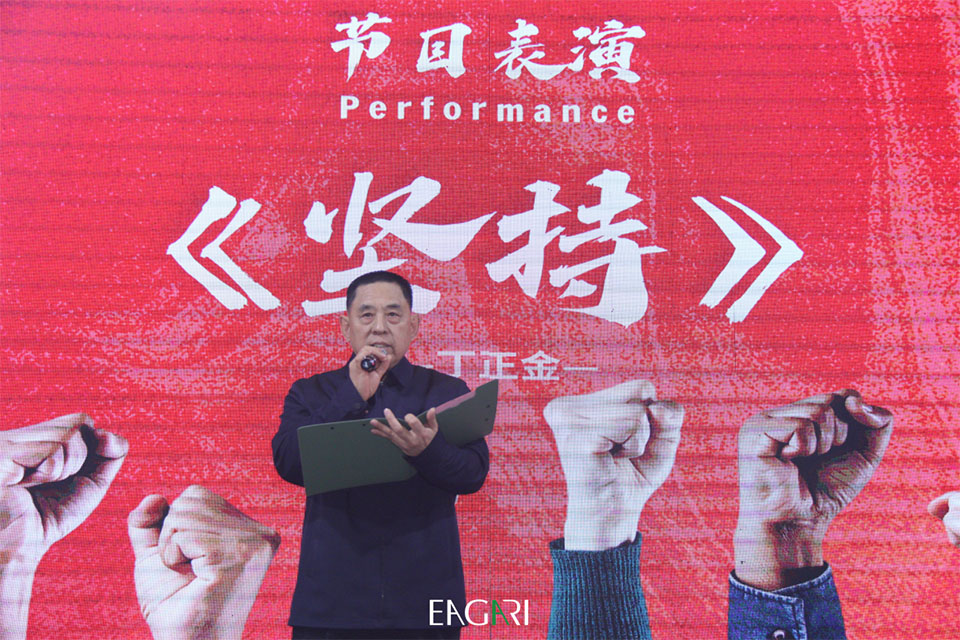 致敬完成长的力量,诗朗诵《坚持》震撼登场。朗诵者们身着整齐服装,以饱满的热情、铿锵的语调,传递着奋斗的力量;深情的演绎中,既有对过往坚守的回望——那些攻克难题的日夜、那些坚守品质的执着,也有对未来前行的笃定。“以坚持之名,赴时代之约;以实干之力,筑高定之梦”,一句句振奋人心的诗句,道出了意格丽家人们对高定事业的无限热爱,以及对公司前景的坚定信心,引发全场强烈共鸣,凝聚起同心实干的强大合力。