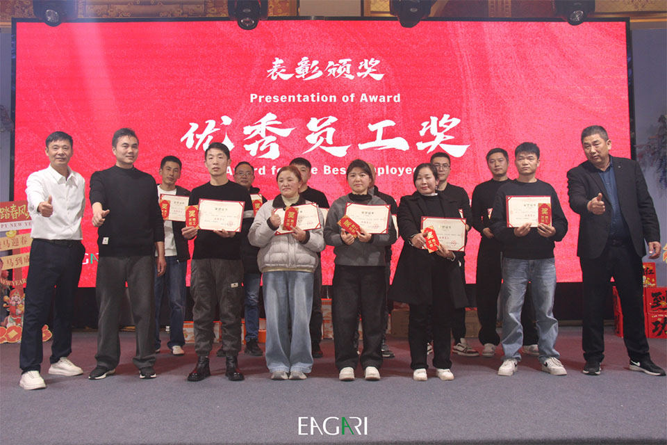 游戏过后,盛典迎来重磅颁奖环节——“优秀员工奖”揭晓。他们是岗位上的佼佼者,是团队中的中坚力量:以敬业奉献诠释责任担当,以勇于超越书写不凡业绩,在平凡的岗位上创造了不平凡的价值。“他们不断超越,化平凡为精彩,敬业奉献勇于超越,一点点耕耘,一分分收获。”这份荣誉,是对他们过往辛勤付出的最高肯定,更是对他们未来继续引领团队前行的殷切期许。获奖员工们依次登台领奖,台下响起经久不息的掌声,既是对榜样的致敬,也激励着全体意格丽家人以他们为镜,砥砺前行、追求卓越。
