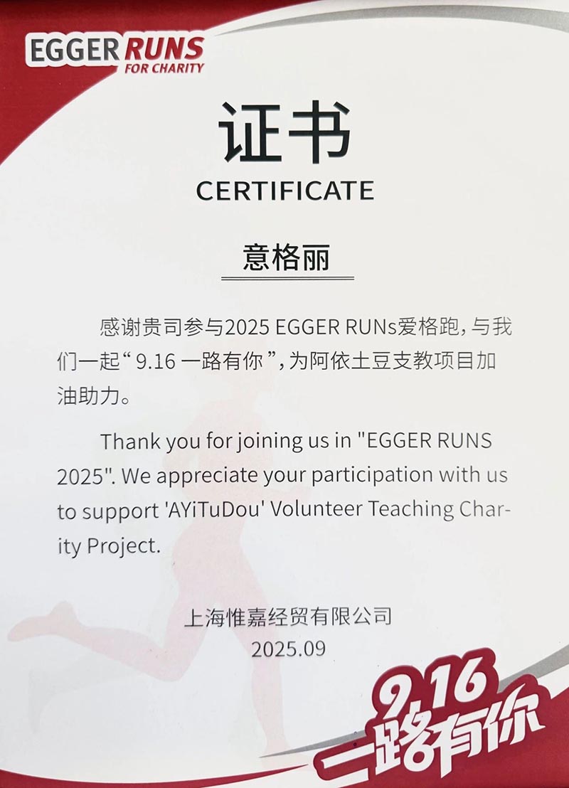 此次爱格跑,意格丽不仅是参与者,更是 “实力赢家”!活动现场,我们凭借积极的参与态度、团队的协作精神,荣获爱格跑活动专属奖状。这份荣誉,是爱格对合作伙伴的肯定,更是意格丽 “用行动践行品质” 的生动体现 —— 就像跑步需要坚持与专注,定制家居也需要对每一个细节的较真。 EAGARI